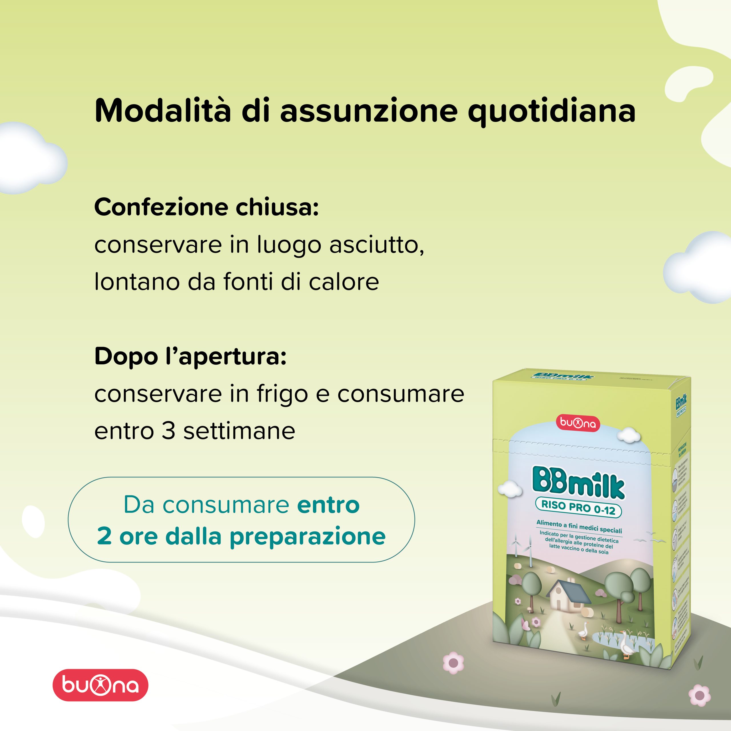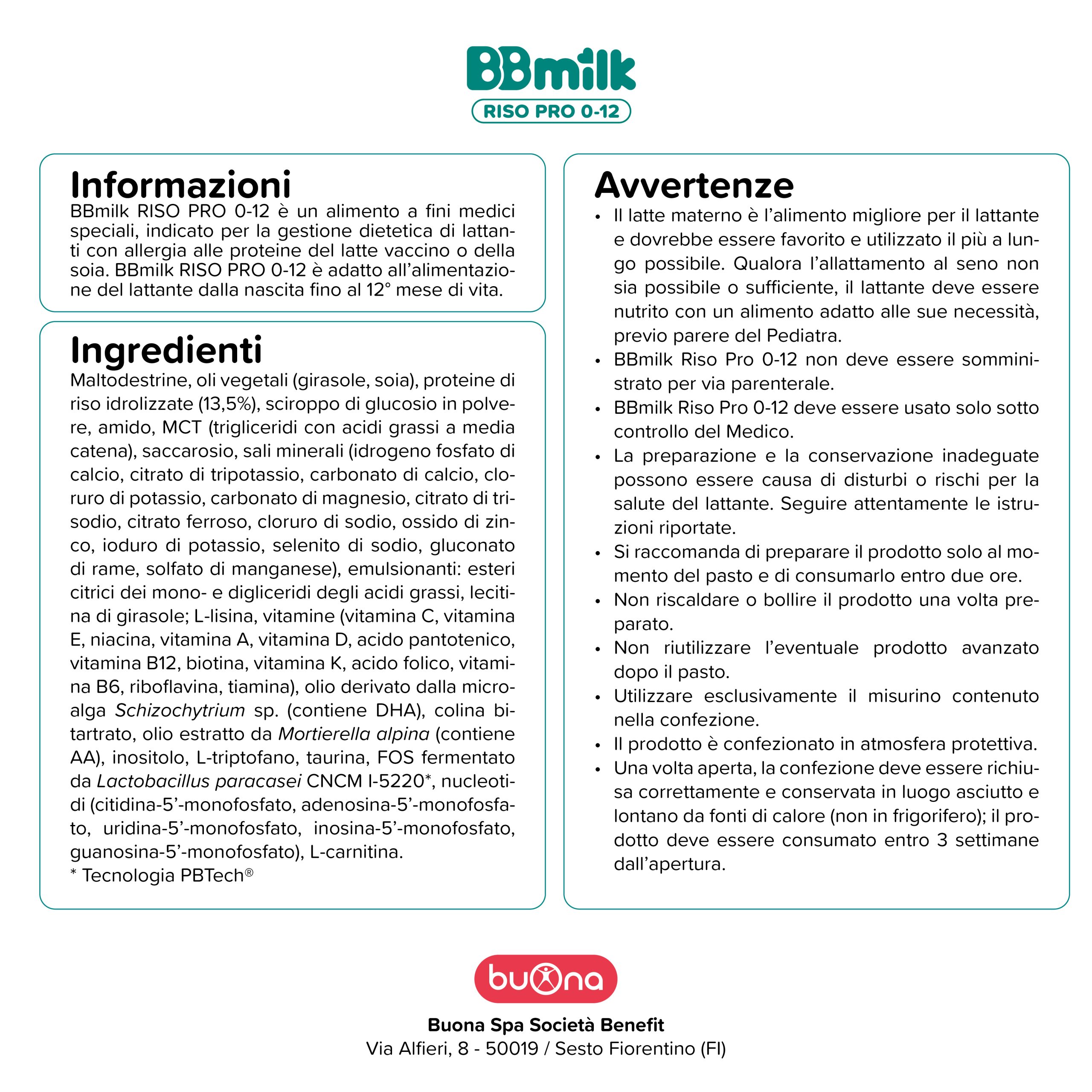 - BBmilk Riso Pro 0-12 years must be used only under medical supervision.