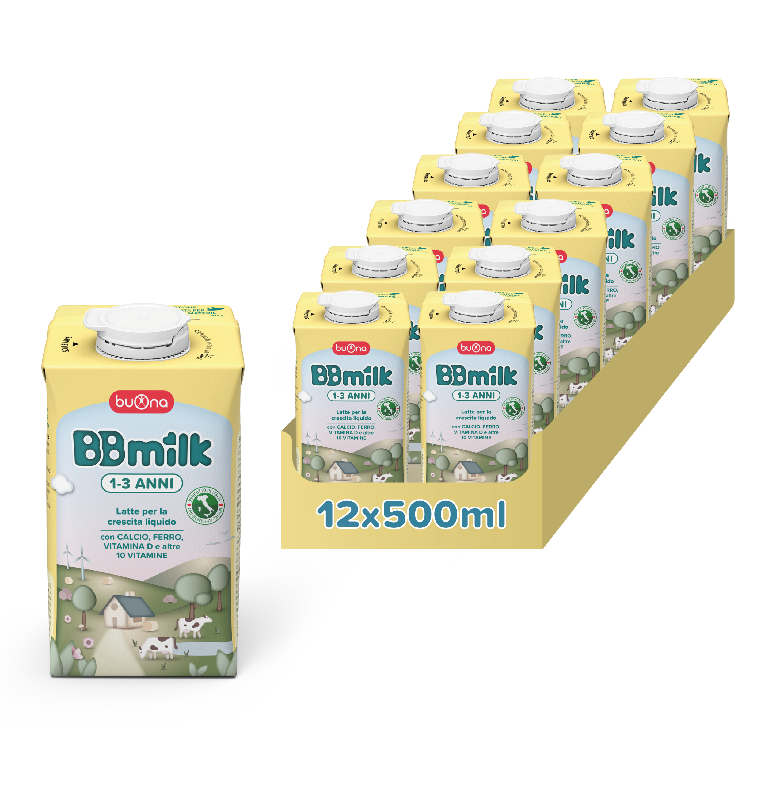 BBmilk 1-3 anni è un latte per la crescita a base di latte fresco pastorizzato di origine italiana, formulato in modo specifico per rispondere alle esigenze nutrizionali del bambino nella prima infanzia da 1 a 3 anni di età, come complemento ed integrazione di una dieta varia ed equilibrata e di un sano stile di vita.