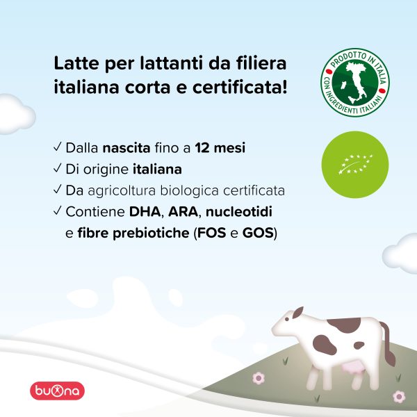 Acqua, latte fresco pastorizzato scremato (29,1%), maltodestrine, oli vegetali (girasole alto oleico, soia, palmisti, colza, girasole), lattosio da latte, galattoligosaccaridi da latte, beta-palmitato (da olio di palma), MCT (trigliceridi con acidi grassi a catena media), concentrato di proteine del siero del latte (contiene MFGM – Membrana del Globulo di Grasso del Latte), proteine del siero di latte concentrate, proteine idrolizzate del siero di latte concentrate, sali minerali (idrogeno fosfato di calcio, carbonato di calcio, cloruro di sodio, citrato di tripotassio, citrato di trisodio, cloruro di potassio, lattato ferroso, solfato di zinco, ioduro di potassio, carbonato di magnesio, solfato di manganese, selenito di sodio, solfato di rame), emulsionante: lecitina di soia, olio estratto da Mortierella alpina (contiene AA), olio derivato dalla microalga Schizochytrium sp. (contiene DHA), fruttoligosaccaridi, proteine del siero di latte ricche in alfa-lattoalbumina, 2’- fucosillattosio (2’-FL) (contiene lattosio), colina bitartrato, vitamine (vitamina C, vitamina E, vitamina D, acido pantotenico, vitamina A, niacina, biotina, vitamina B12, vitamina K, acido folico, tiamina, riboflavina, vitamina B6), lattoferrina da latte, inositolo, L-cisteina, FOS fermentato da Lacticaseibacillus paracasei CNCM I-5220*, taurina, nucleotidi (citidina-5’-monofosfato, adenosina-5’-monofosfato, uridina-5’- monofosfato, inosina-5’-monofosfato, guanosina-5’-monofosfato), L-carnitina, LipocalTM microcapsules (tricalcio fosfato, emulsionante: lecitina di soia), LipoferTM microcapsules (amido di mais, ferro pirofosfato, emulsionante: lecitina di girasole).